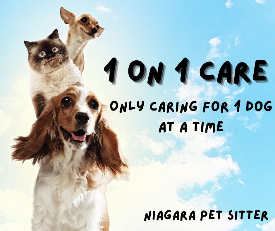 Pet daycare at Niagara Pet Sitter is always fun. Tourists who visit the Niagara Falls can rest assured that their pet is in a safe, loving, one on one environment. While you are having fun, your pet will also be having fun.