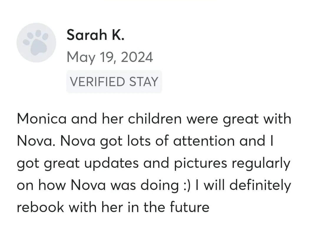 Follow me on Instagram where you will see many fur and feathered babies I have cared for and reviews from their families.